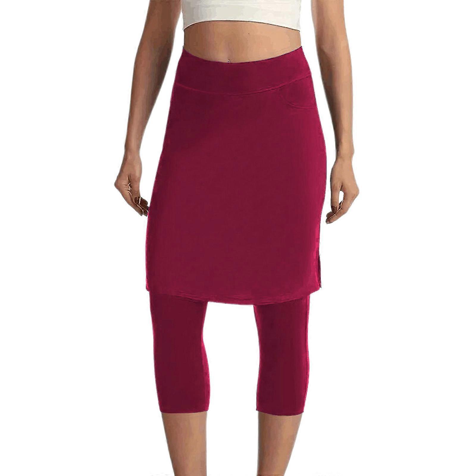 Athletic Skirt Yogas Skirt Leggings Gym Tennis Outfit Fabric Tennis Running Bottoms Polyester Texture Perfect for Women Claret XL