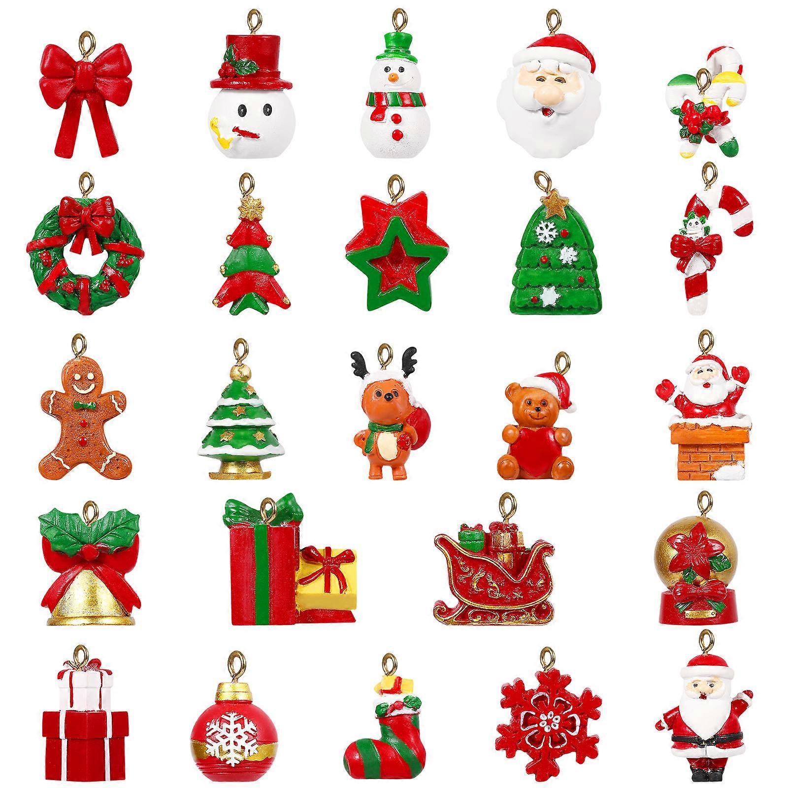 Assorted Color Christmas Advent Calendar 24Pcs Mini Resin Hanging Decorations Toys For Children Gift Countdown For Christmas New Year