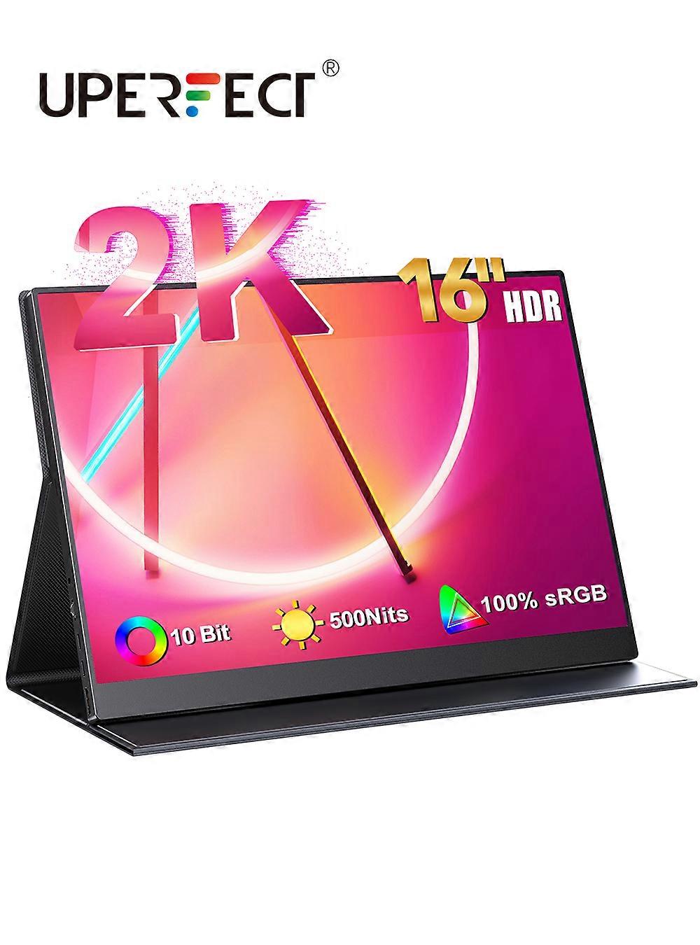 Upgraded 16" Portable Monitor 2K PS HDR Eye Care Screen Gaming Display With Dual Speakers HDMI Type-C VESA For Laptop PC MAC PS5