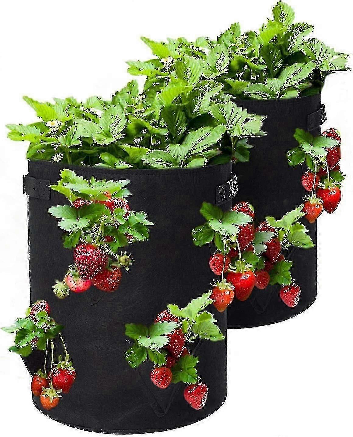 Upgrade Strawberry Grow Bags, 2 Pack 10 Gallon Strawberry Planter With 8 Side Grow Pockets, Breathable Strawberry Growing Bag Compatible Strawberrie-i
