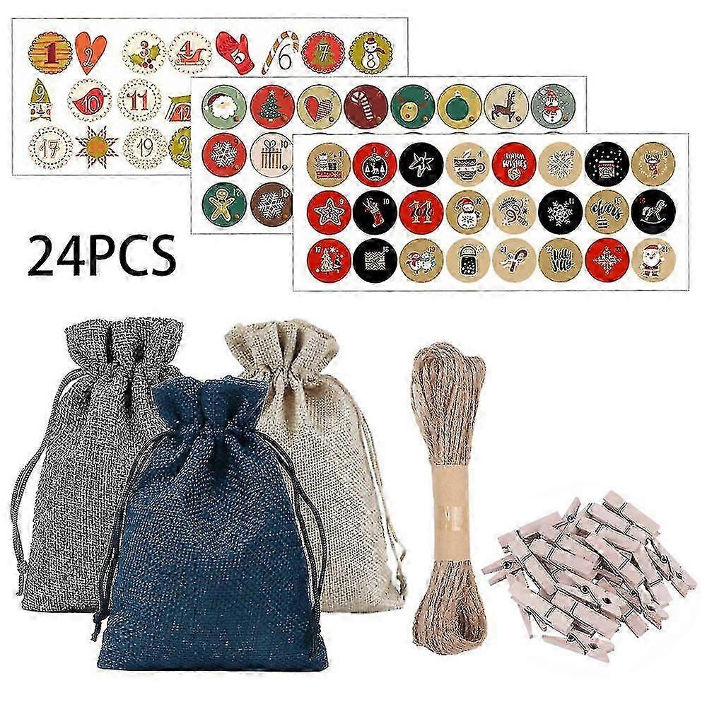 Advent Calendar, 24 Christmas Gift Bags, Christmas Pouch, Fillable Fabric Bags, Gift Bags With Number Tags And 24 Wooden Clips, For Diy Christmas Deco