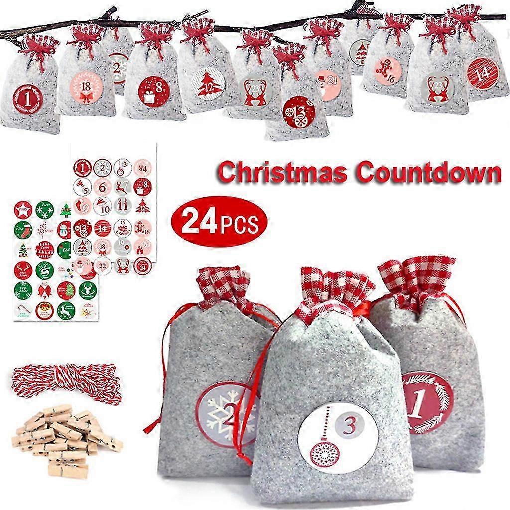 Adventskalender Christmas Pattern Candy Bag 1-24 Advent Calendar Bundle Linen Gift Bag