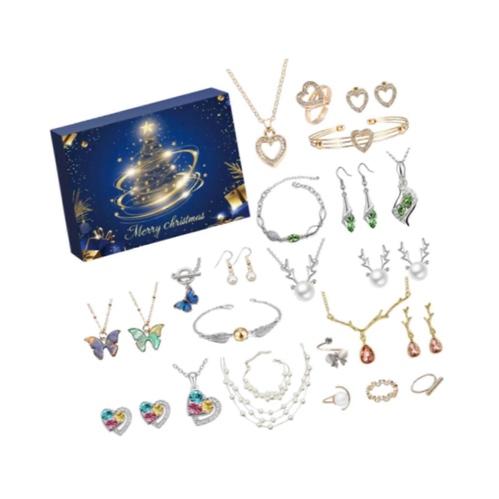 Advent Calendar Jewelry Christmas Casual Necklace for Holiday Birthday Party Blue Box