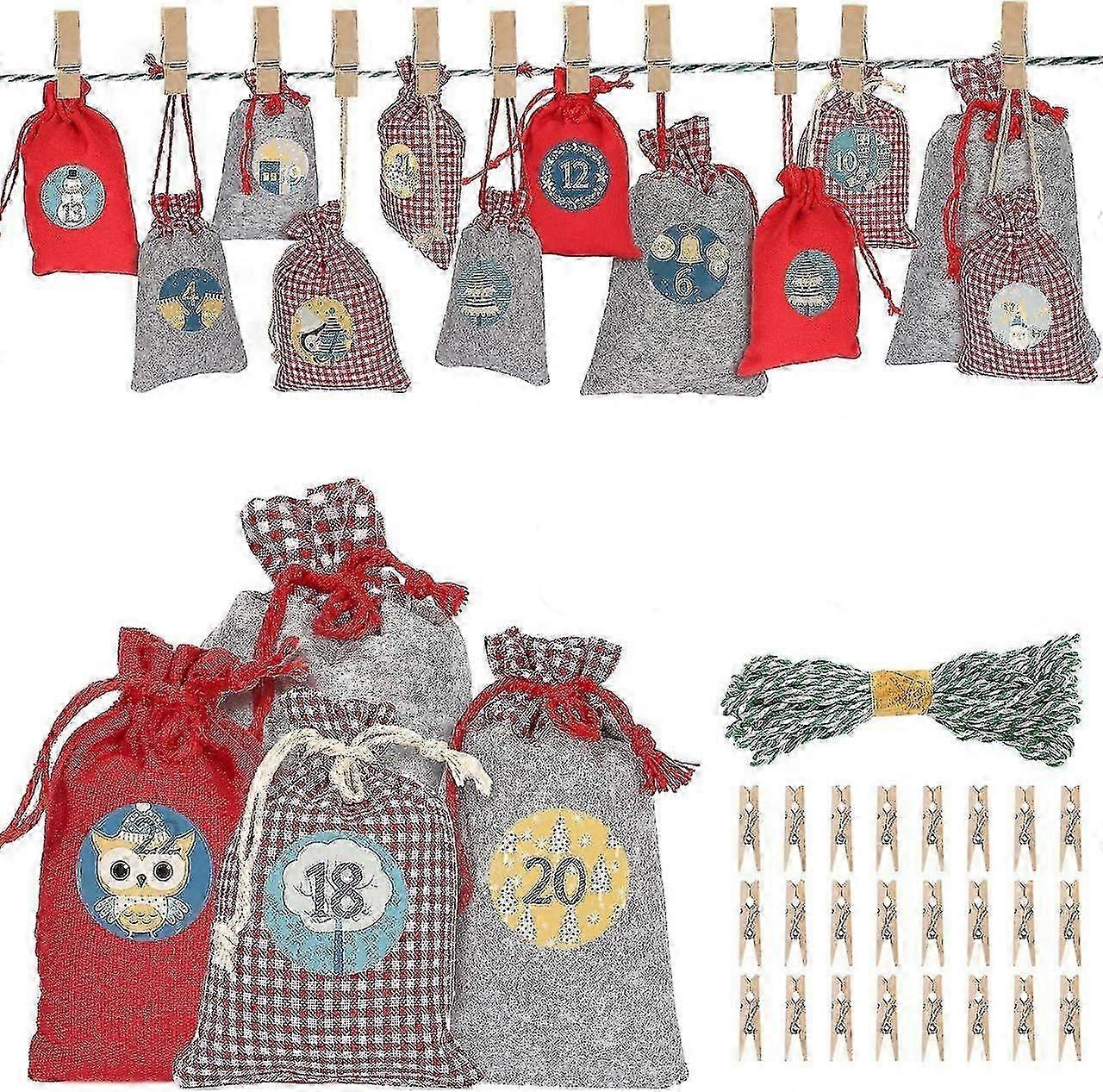 [DIY Christmas Advent Calendar] includes 24 Advent calendar bags,24 number stickers (December 1-24),24 wooden clips and 10 meters of string . Our Christmas Advent Calendar Gift Bag is a fun way to help your kids celebrate. calculate the days before Christmas and bring a cozy and warm atmosphere to your home. your Christmas holiday.^