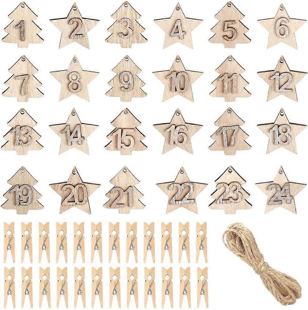 Advent Calendar Numbers Wooden, Christmas Advent Calendar Number Christmas Countdown Calendar with 24 Pieces Clips, Wooden Christmas Tree Ornaments fo