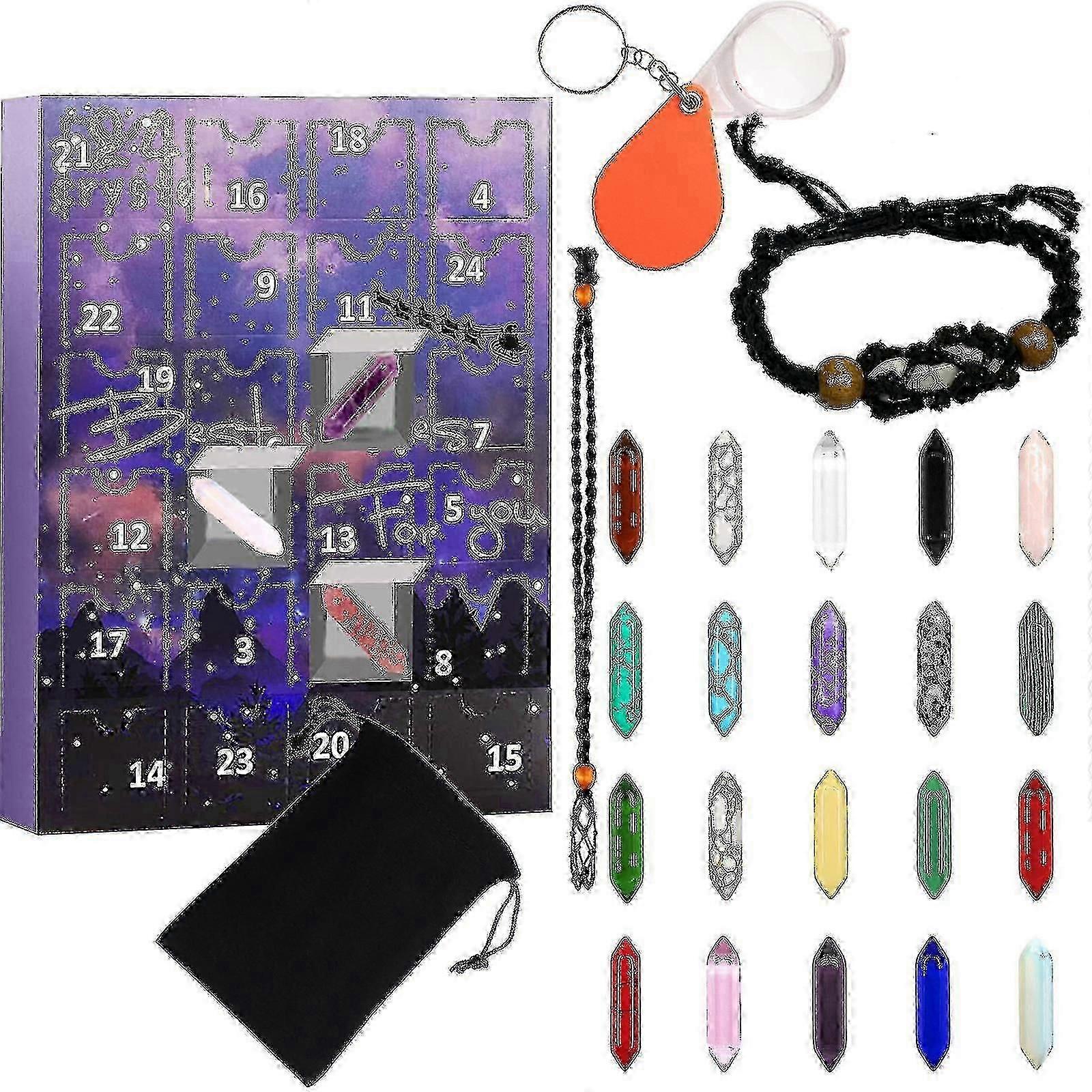 Advent Calendar 2024-24 Days Crystal And Healing Stone Kit With Crystal Necklace And Bracelet Holder
