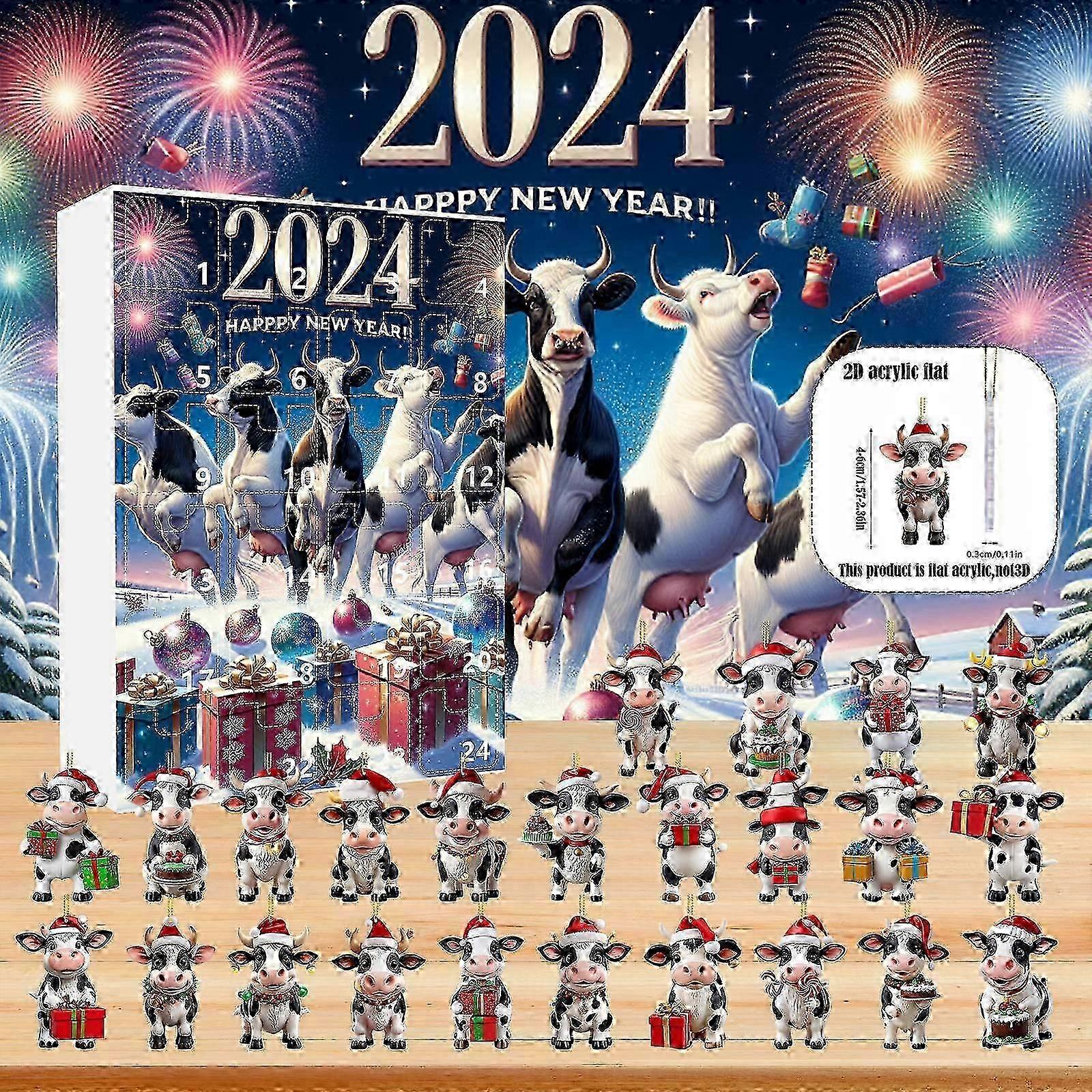 Advent Calendar 2024 Kids 2024 Advent Countdown Calendar 24 Day Christmas Advent Calendar Cute Cow Christmas Ornaments Pendant Christmas Cow Figures