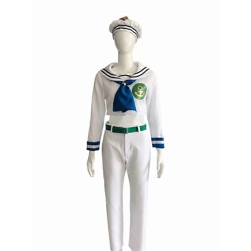 Anime Cosplay Costume Japanese Sailor School Uniforms Men Halloween Party COS Outfit White Blue Top Pants Hat Belt