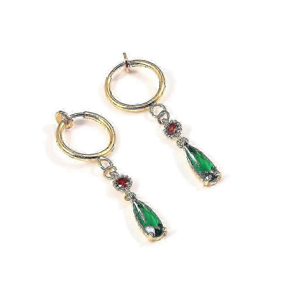 Anime emerald Howl's moving castle Hall with the same zircon copper earrings cos around without ear holes YDW