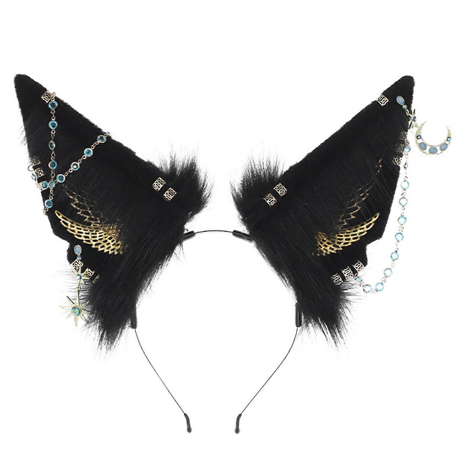 Anime Character Headband Wolf Ears Shape Hair Hoop Plush Carnivals Party Headpiece Cosplay Party Costume Props Unisex Black