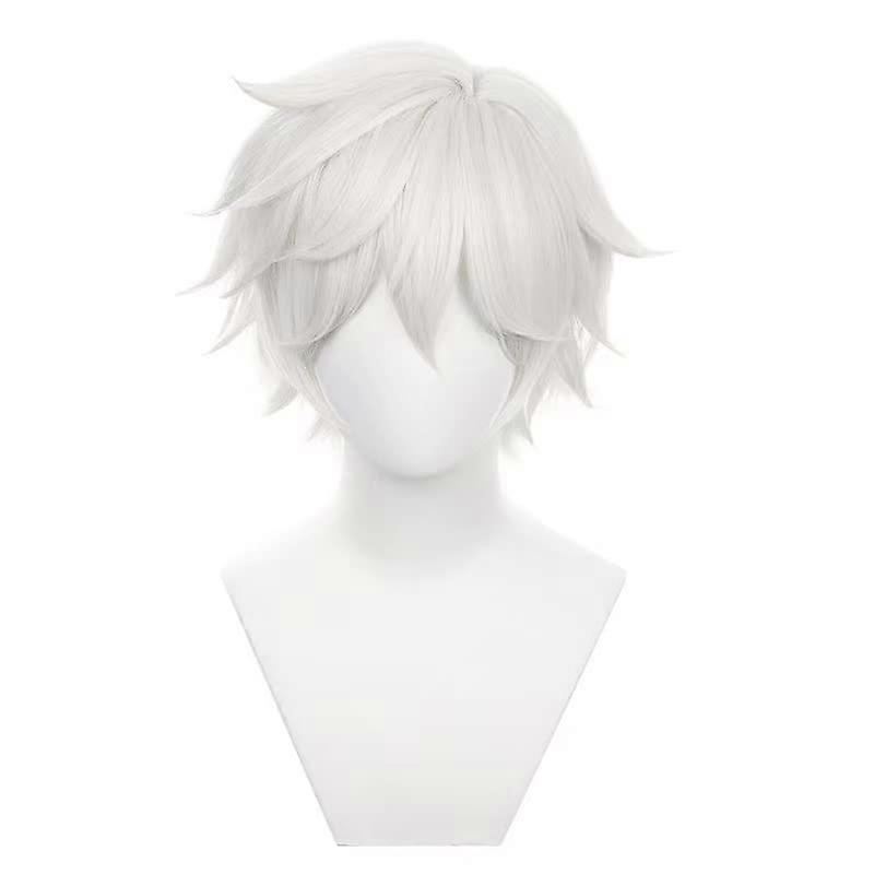 Anime Gray White Cosplay Gabimaru Wig Short Curly Hair for Men Halloween Costume Party Cosplay Accessory
