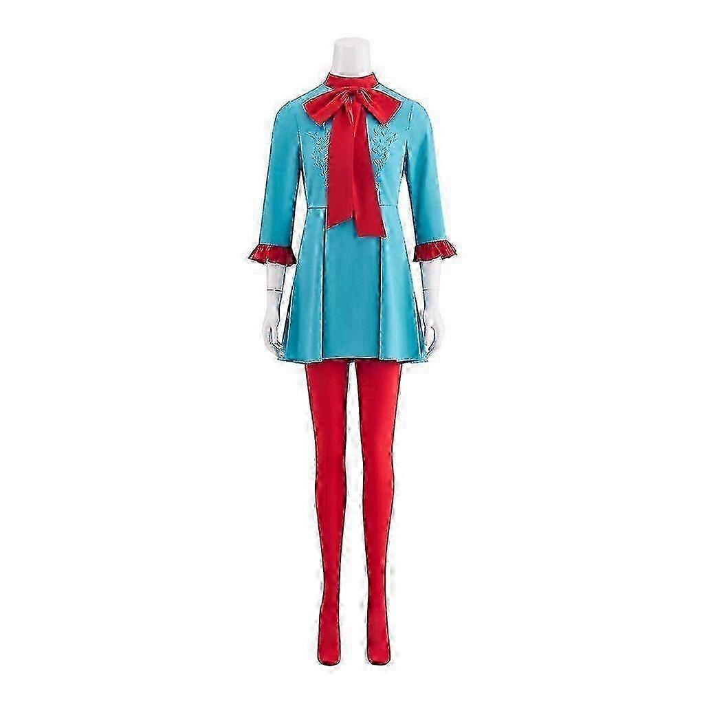 Anime Cosplay Dress - Blue Flared Skirt with Red Bow, Performance Costume for Women