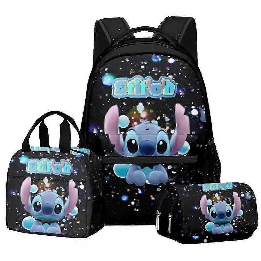 Anime Stitch 3 Piece Set Schoolbag, Student Schoolbag, Character Backpack, Game Print Schoolbag, Breathable