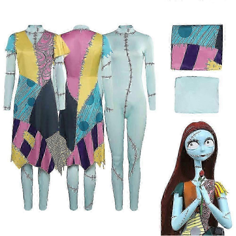 Anime Nightmare Cos Before Christmas Sally Cosplay Costume Jumpsuit Dress Outfits For Adult Women Girls Halloween Carnival Suit