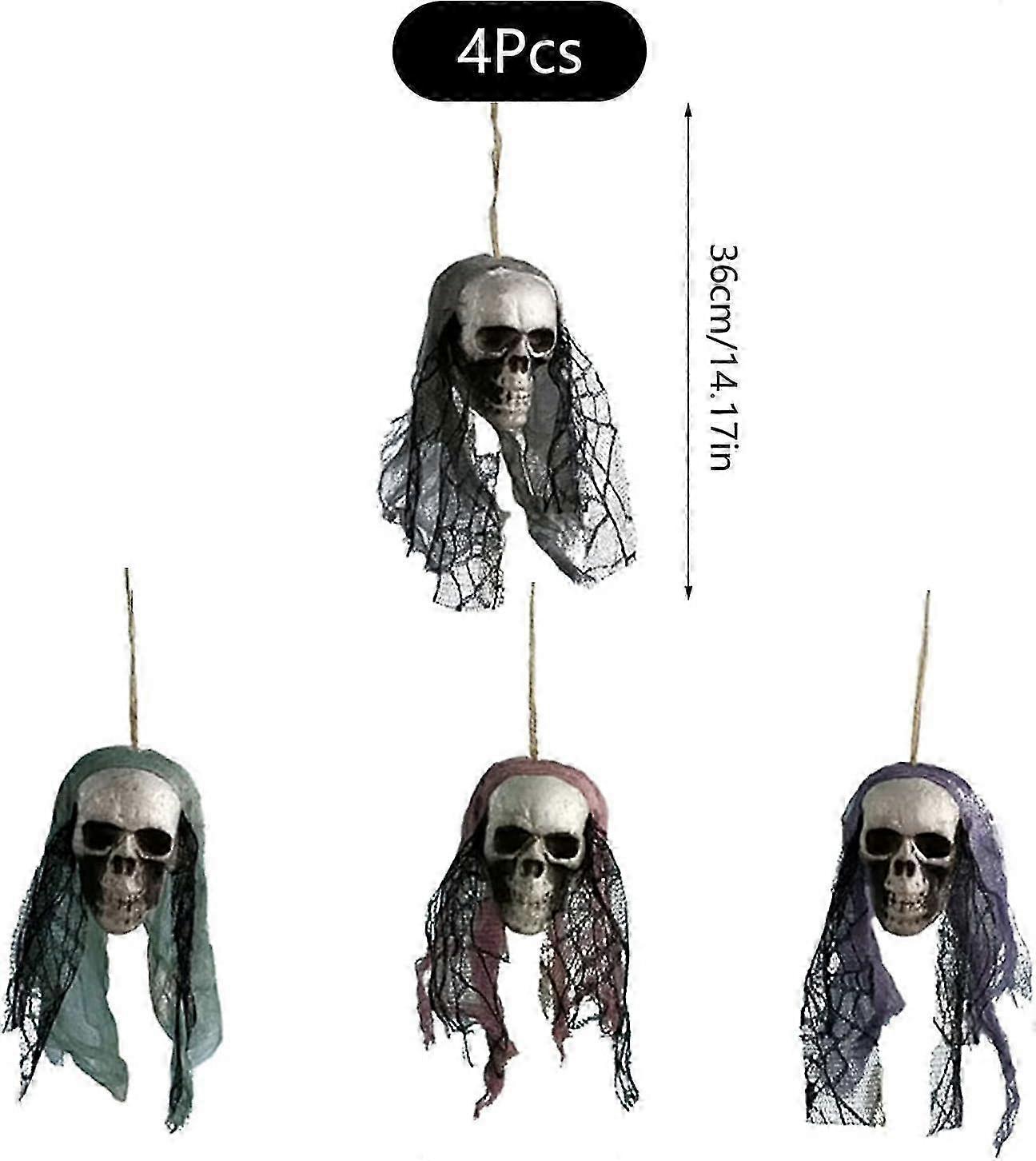 Animated Hanging Skull Halloween Decor, Spooky Skeleton Ghost Ornament