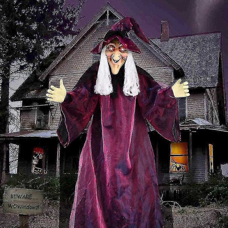 Animated Witch Halloween Decoration Hanging Animated Talking Witch House Prop Ornament Horror Witch Skeleton Halloween Decoration