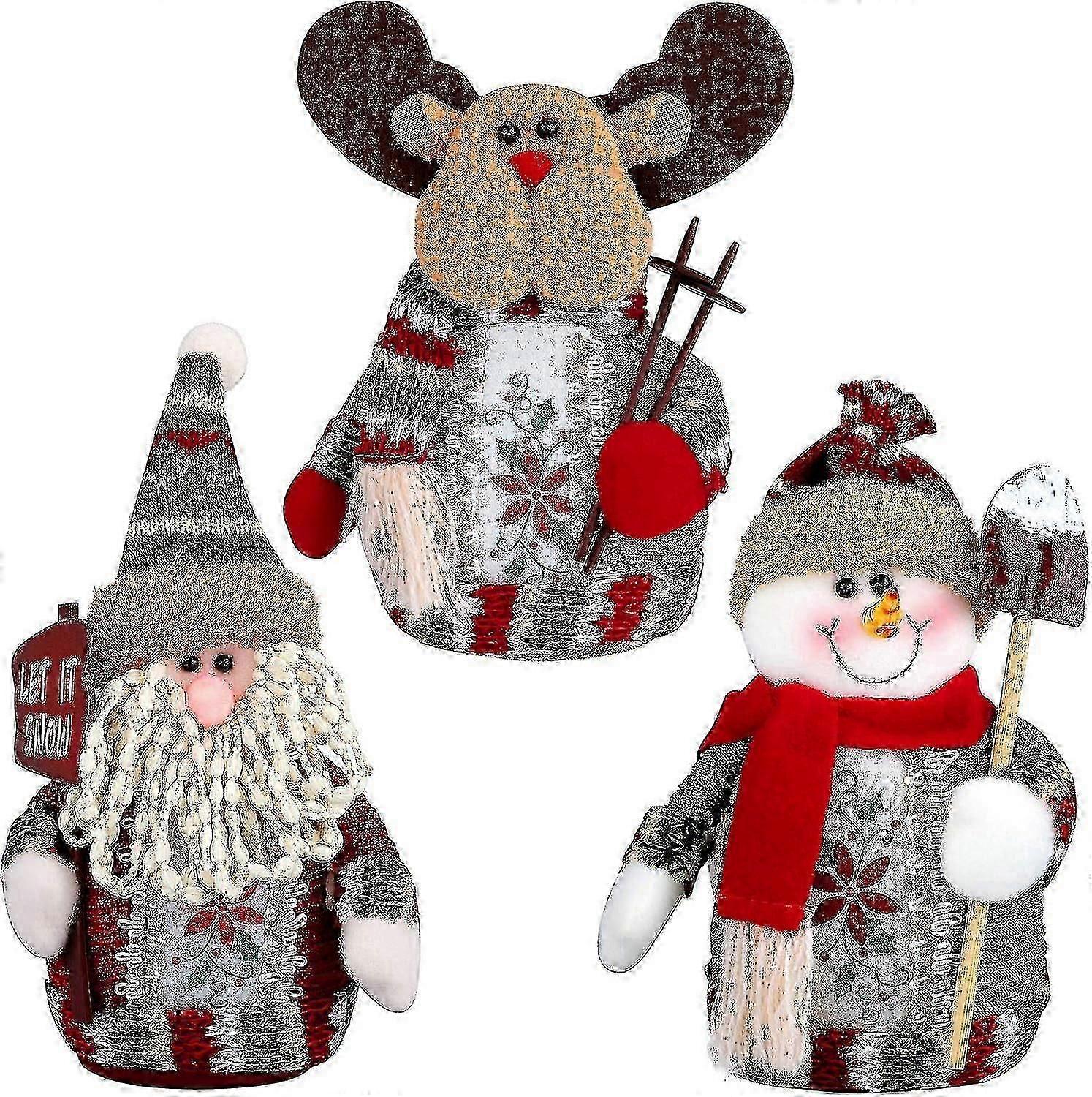 Aneco 3 Pack Christmas Sitting Santa Snowman Reindeer Table Decorations Table Holiday Merry Christmas Happy Holidays Party Supplies