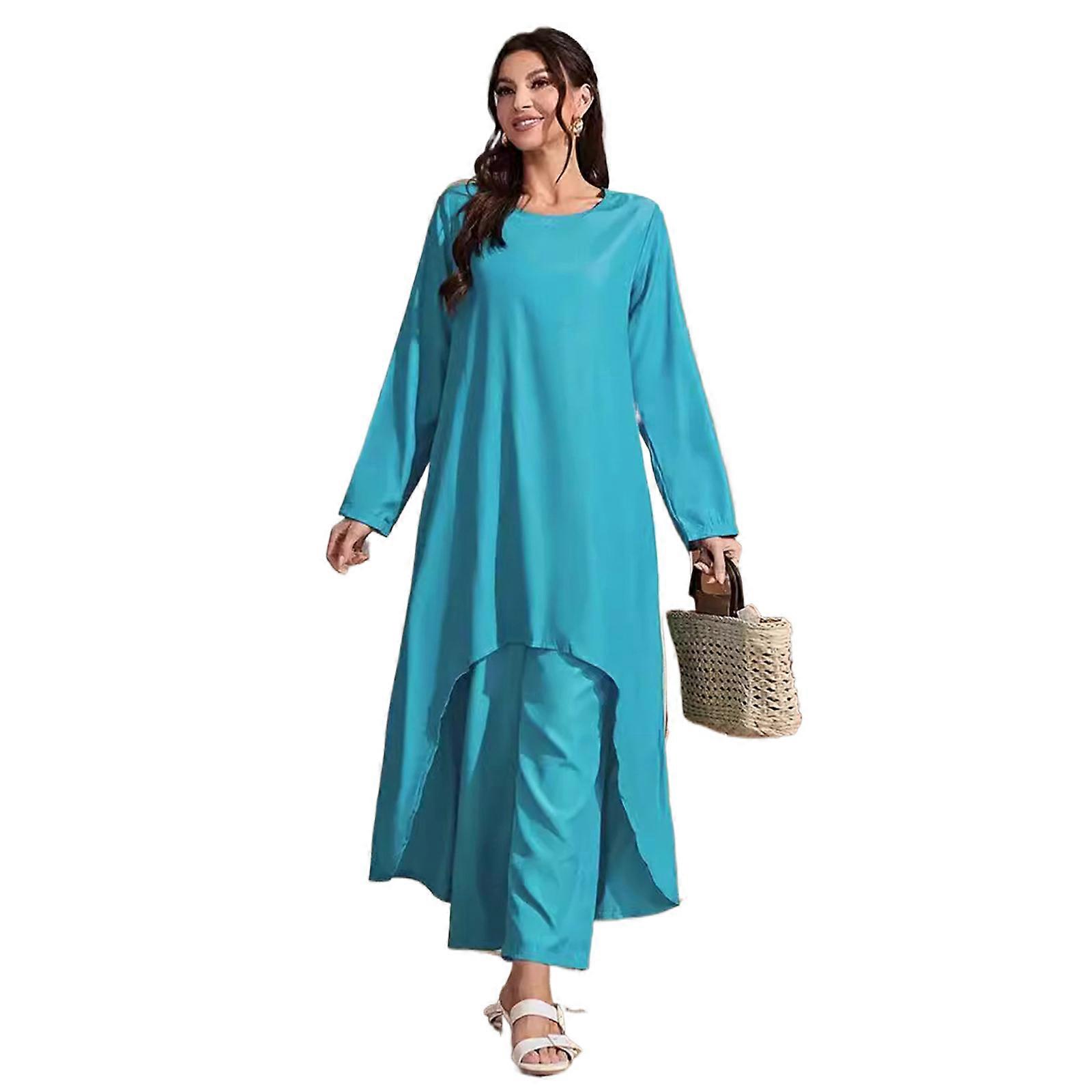 Women Islamic Clothing Set with Abaya Dress, Wide Legged Pants, Islamic Kaftan Dress Islamic Robe Dress Kaftan Abaya sky blue S