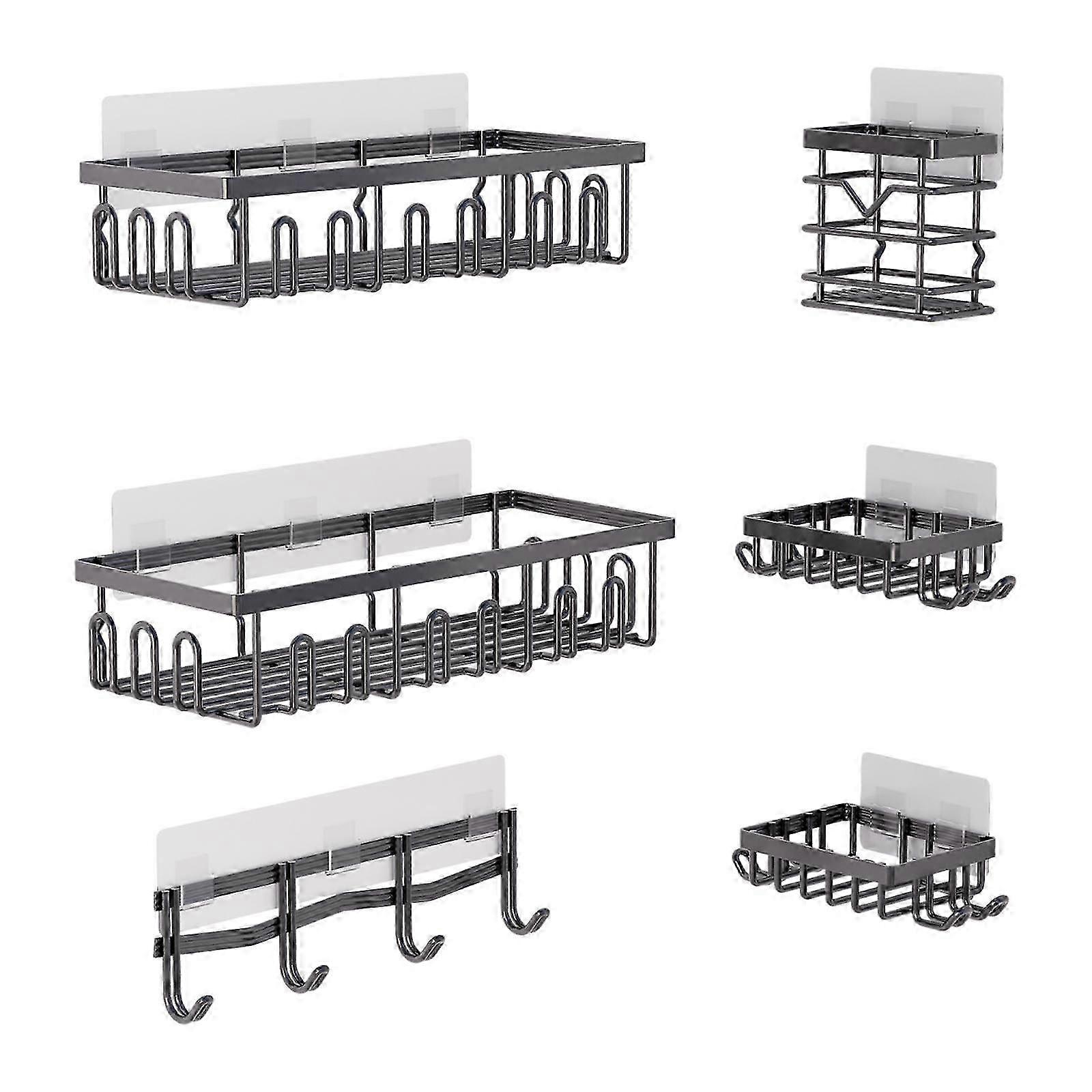 6-Piece Bathroom Shower Organizer Set for Apartment, Washbasin, Dorm - Black