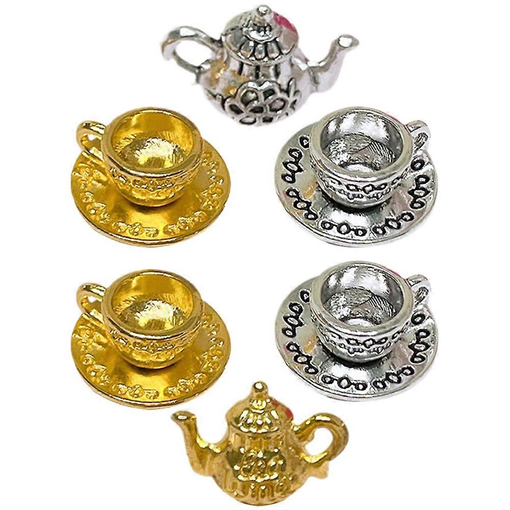 Afternoon Tea Set Toys Mini Teapot Toy Gold Color 1.4X1.4X0.7CM Doll House Accessory 2 Sets
