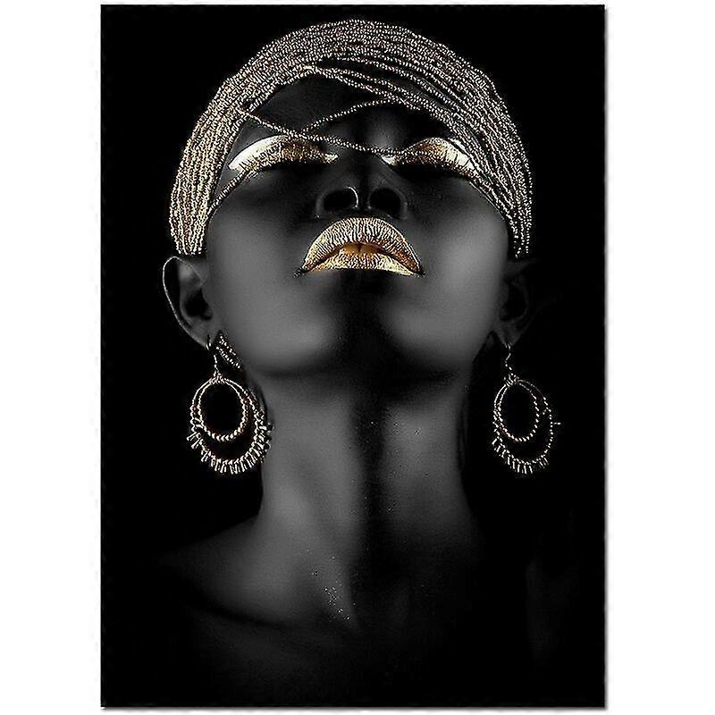 African Art Black Woman With Golden Headdress Canvas Paintings Wall Art African Girl Posters Prints Wall Art 60x80cm No Frame