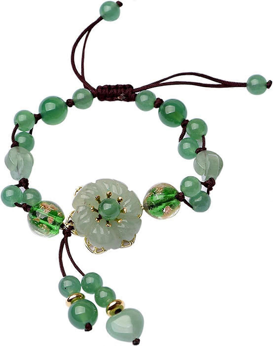 Aventurine Jade Ethnic Bracelet Oriental Handmade Knitting Natural Stone Bead Wrist Chain Hand Jewel