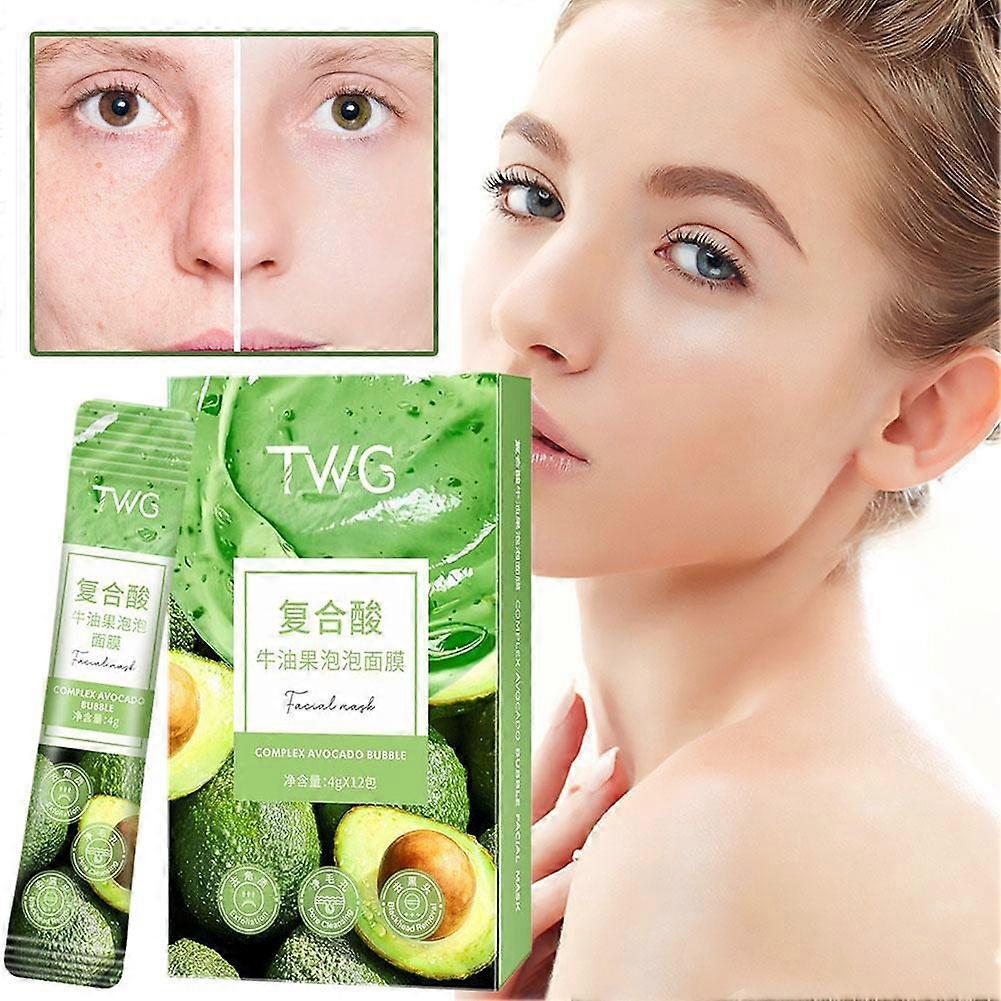 Description: SPECIFICATION: Name: Avocado facial mask Specification: 4g * 12 packs/box Shelf life: 3 years Efficacy: Clean pores, remove oil, blackheads, exfoliate, moisturize and moisturize skin. ADVANTAGES: 1. Avocado bubble cleaning facial mask has a powerful skin cleaning effect, which can remove blackheads, acne, exfoliate, and improve the coarseness of pores. 2. Select the compound acid avocado essence, which has a good effect of cleaning blackheads. The foam is plump and soft, and it can penetrate into the pores to clean and absorb blackheads and dirt. 3. Avocado bubble facial mask can effectively lighten skin tone and improve yellowing, dullness and aging of skin caused by staying up late. 4. It automatically generates rich foam, allowing skin to get comfortable and refreshing care, suitable for all types of skin. 5. Each time you use a bag, it is fast and simple. The mud film is moist, delicate and easy to apply. Don't worry about damaging your skin by staying up late. HOW TO USE: Evenly smear the facial mask on the skin after cleaning the skin, wait 15-20 minutes, and then clean it after generating rich foam. COMMENT: 1. Manual measurement tolerance is 2-5g. Please don't mind your substitutions. 2. Due to the difference between different monitors, the image may not reflect the actual color of the item. thank you very much! 3. SKU color is the color of product packaging PACKAGE INCLUDED: 1*1 box Avocado Bubble Cleansing Mud Mask