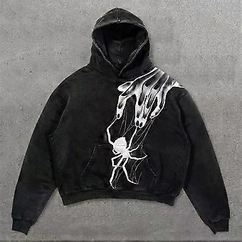 American Vintage Aesthetics Pattern Print Loose Hoodies Men Oversized High Street Hip Hop Pullover Sweatshirts Couple Clothing