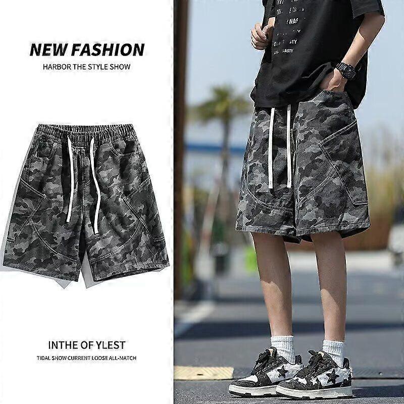 American High Street Camouflage Workwear Shorts For Men, Summer Plus-Size Loose Straight-Leg Trendy Brand Casual Sporty Five-Point Pants, Trendy