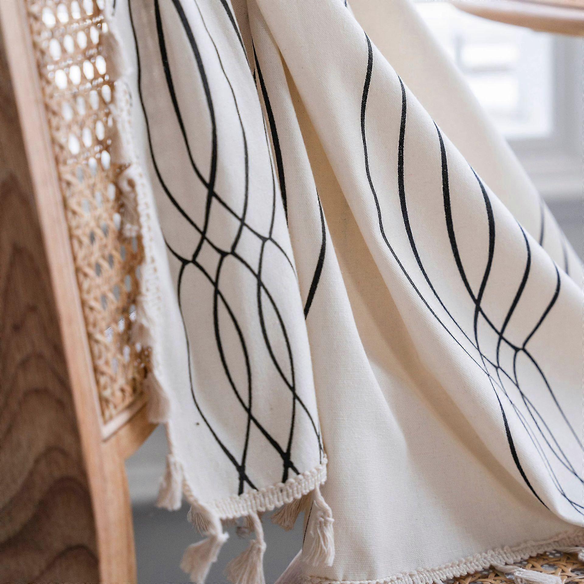 American Beige Tassel Semi-blackout Printed Curtain Living Room Bedroom Bay Window