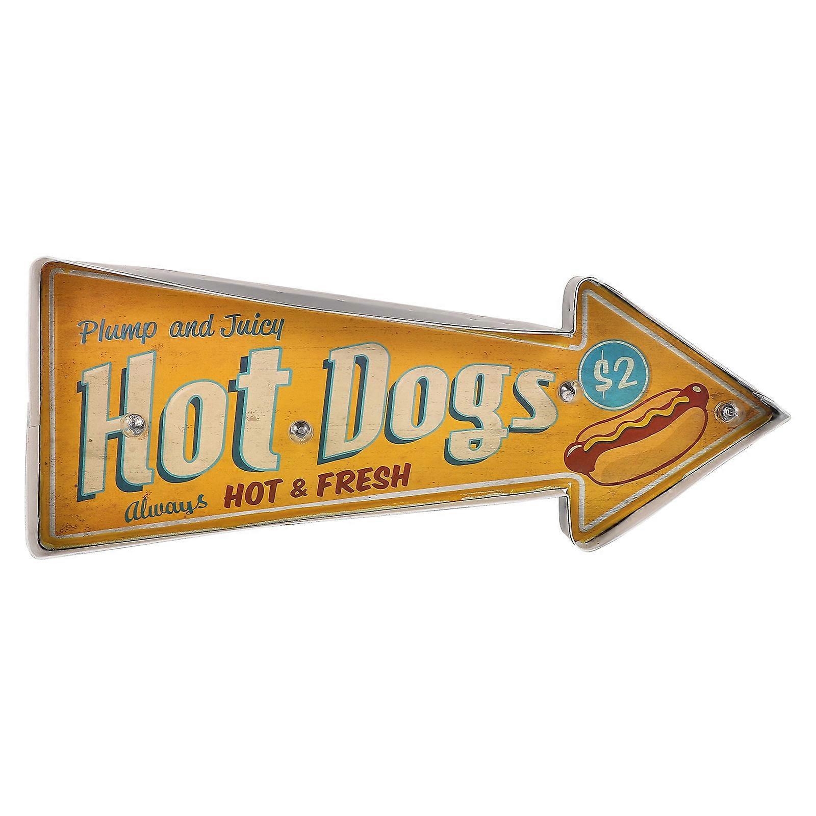 American Retro Style Iron Hot Dog Instruction Light Board Decor Yellow for Bar Restaurant