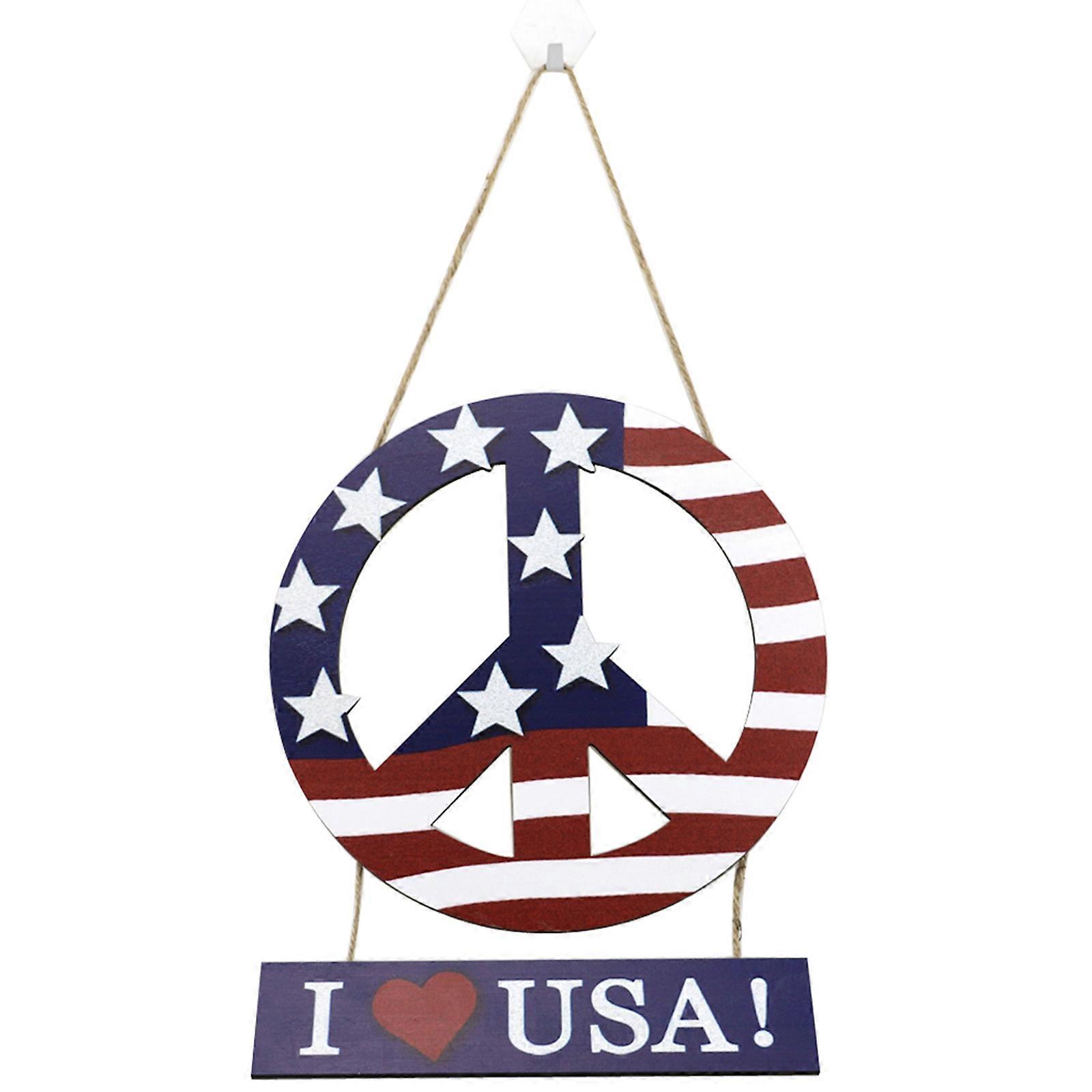 American Independence Day Pendant Wood Patriotic Star Letters Sign