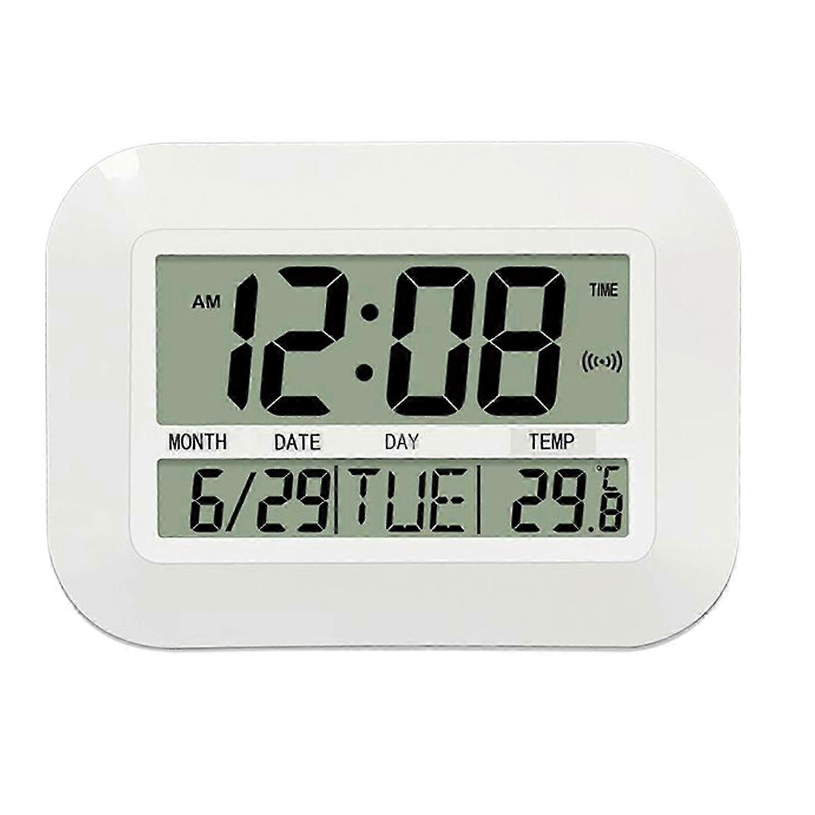 Materials: The alarm clock is made of high grade ABS plastic materials which built a sleek and elegant appearance for decoration. Large Display alarm clocks: the snooze function, and timer are easy to view in the living room, hall, kitchen. Alarm clock: easy to use,Ideal for the elderly or the visually impaired, suitable to be a gift to your family or friends. Functions: temperature, date, calendar, , uptime, memorial day alarm clock Other uses: for shop, cafe, school, office, hotel, hall, mall, and ect. 2x AAA Battery (Not Include) . Specification: Material: ABS Plastic Color: White Size Chart: Size: 249x183x23mm/98.03x72.05x9.06inch Package Includes: 1 Piece Wall Clock