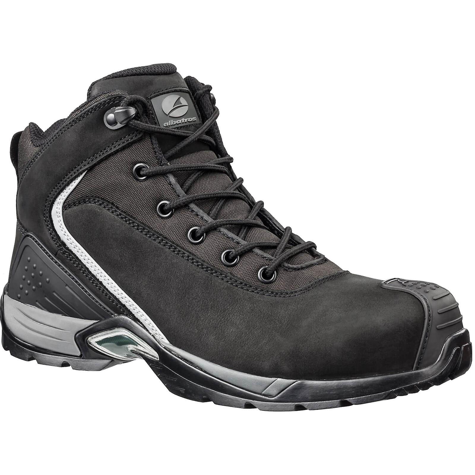 Key Features and Benefits Robust, up to 300 C heat resistant HRO rubber outsole (SRC) with differently formed profile elements that provide grip on various grounds and have self cleaning properties. Oil and petrol resistant, antistatic sole. The soft and extremely lightweight EVA midsole offers optimum cushioning in the heel and forefoot area, where most of the stress during walking arises and improves the flexing action of the foot. The newly developed, breathable ALBATROS comfit AIR footbed has elevations in the heel and ball area of the foot as well as a support of the longitudinal arch. Oiled nubuck leather has the same velvety character like nubuck leather, but it's smoother and offers more protection against moisture penetrating Fitting: Standard Fastening: Lace Up Certifications EN ISO 20345:2011 HRO SRC S3 Materials Upper Outer Material: Leather Lining Material: Textile Sole Material: Rubber