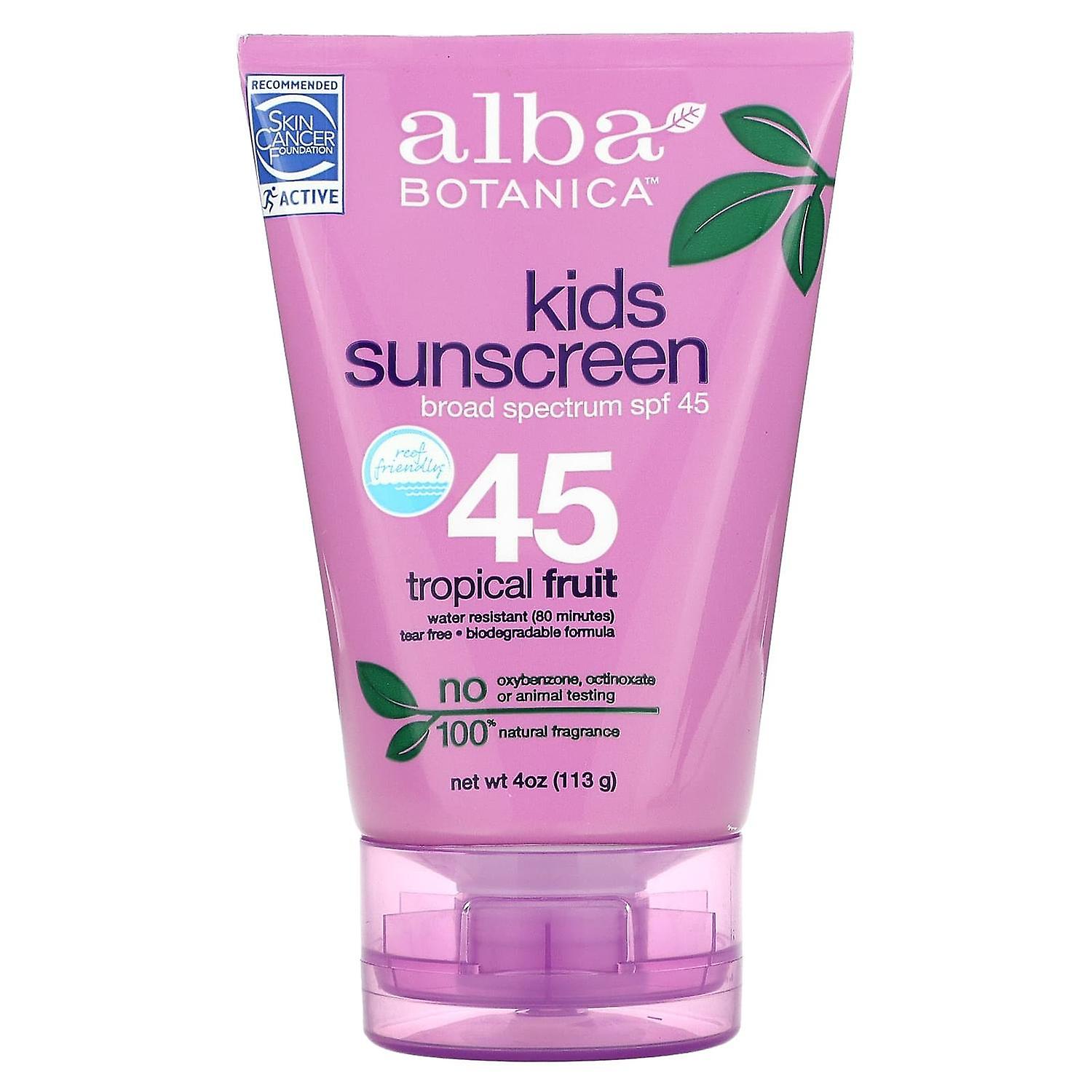 Alba Botanica, Kids Sunscreen, Tropical Fruit, SPF 45, 4 oz (113 g)
