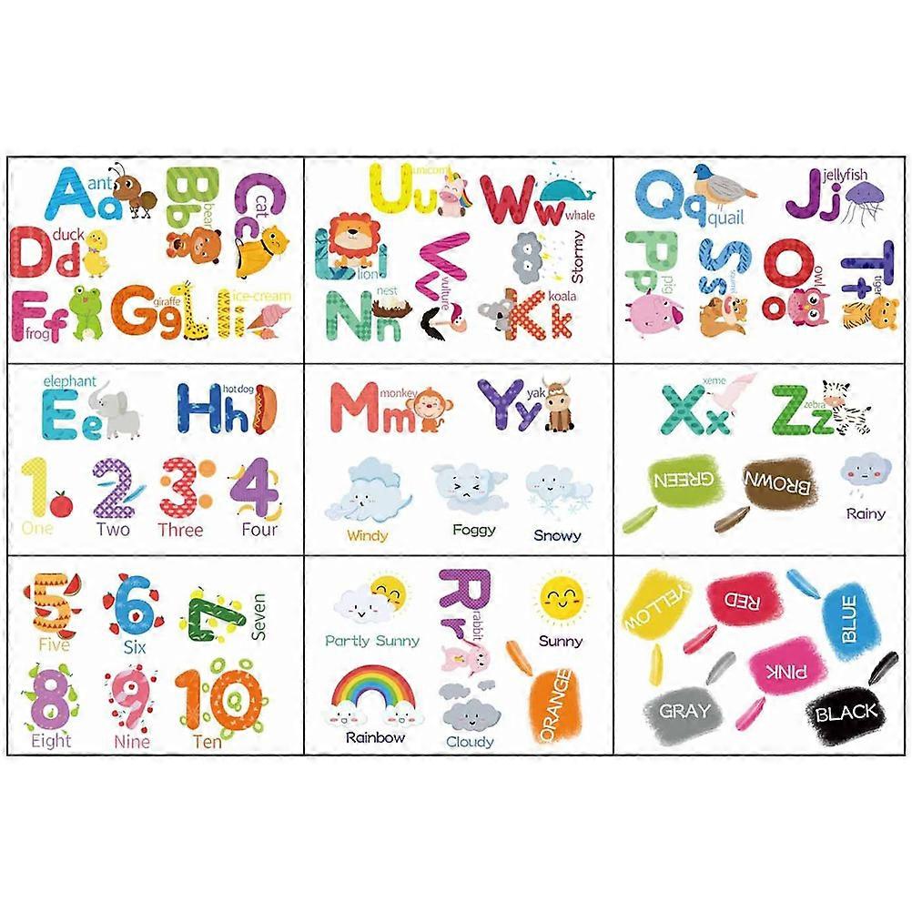 Alphabet Number Stickers 9 Sheets Educational Early Learning Decals Safe Material Classroom Nursery Decor Posters