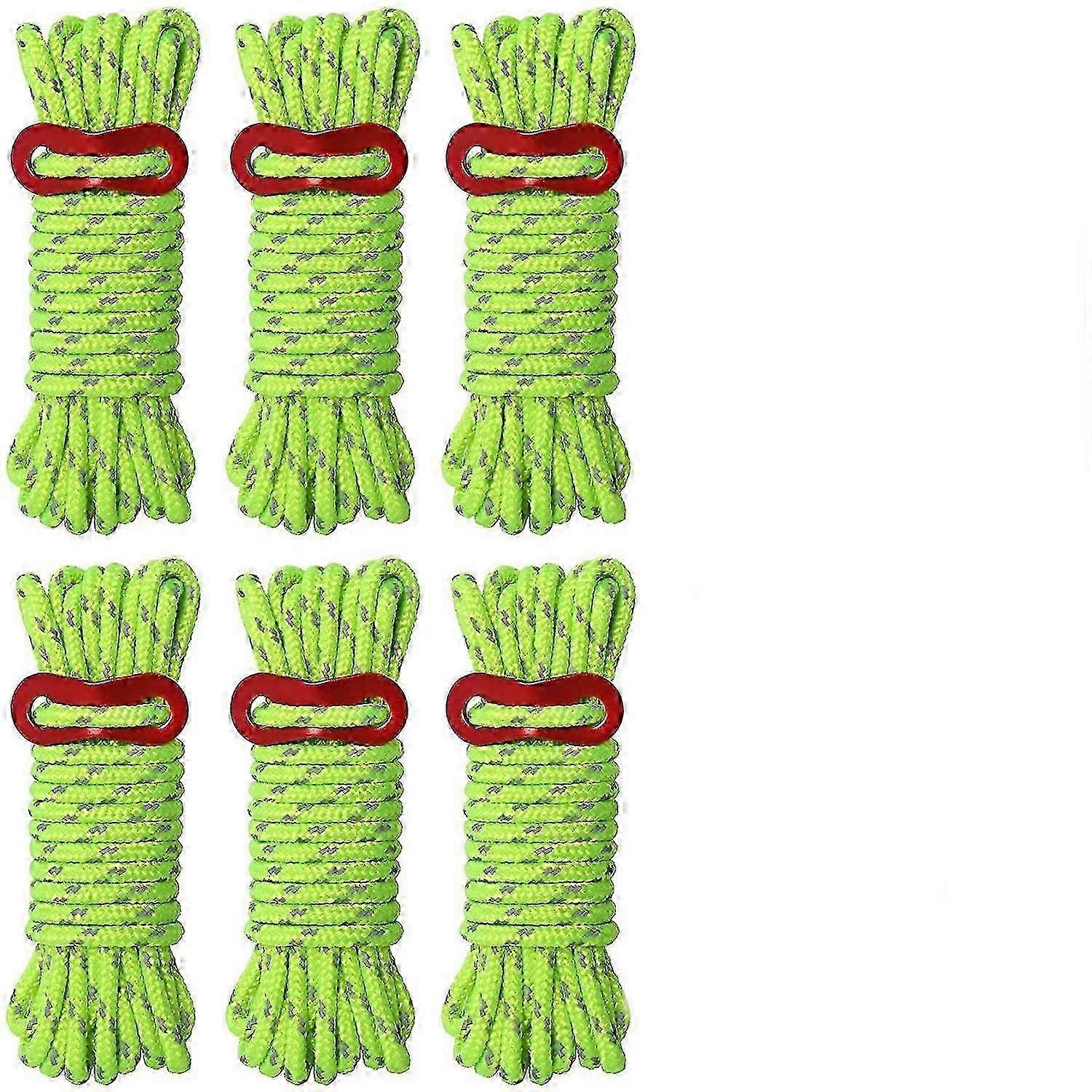 5mm Reflective Cord Tent Guide Rope with Aluminum Adjuster,for Camping Hiking Awning, Fluorescent green, 6PCS hwy
