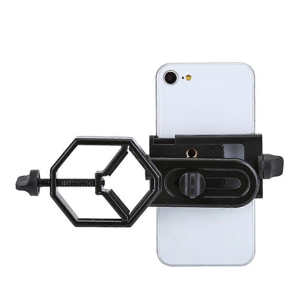 Aluminium Alloy Telescope Rifle Scope Universal Cellphone Adapter Phone Mount Description: This solid adapter allows the connection of your smartphone to your scoping instrument with an eyepiece, telescope, monoscope, monoculuar spotting scope, telescope, microscope, certain binocular models. Enable you to capture your amazing sights with your smartphone or mobile device. Features: Crafted with metal materials, premium aluminuim alloy, which is durable, sturdy and lightweight. Part made of the phone clip is made of high strength plastic. Scope clip is equipped with high density EVA pads, and the phone clip provides your phone with anti-slip fixation and protection. Adjustable scope range, fits eyepiece's diameter from 28mm-47mm, adjustable phone clip fits cellphone with length between 54mm-90mm. Suitable for various devices like monocular, rifle scope, telescope, etc, easy to install and use. 3/8'' screw hole on the bottom, can be mounted on tripod or monopod, etc. Specification: Material: Aluminium alloy + plastic Color: Black Screw Hole: 3/8'' Scope Clip Range: Approx. 28 - 47mm / 1.1 - 1.85inch Phone Clip Range: Approx. 53 - 95mm / 2.08 - 3.74inch Weight: Approx. 126g Package Include: 1 X Adapter Mount Camera is not included.