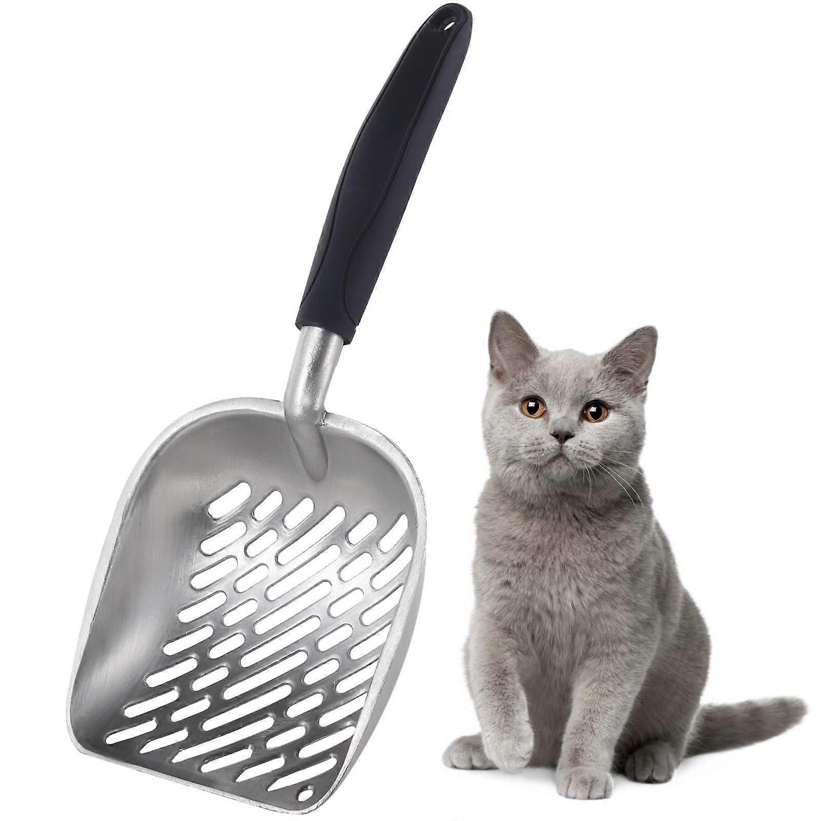 Aluminum alloy cat litter scoop, metal shovel with nonslip long handle, nonstick coated shovel for efficient waste removal.