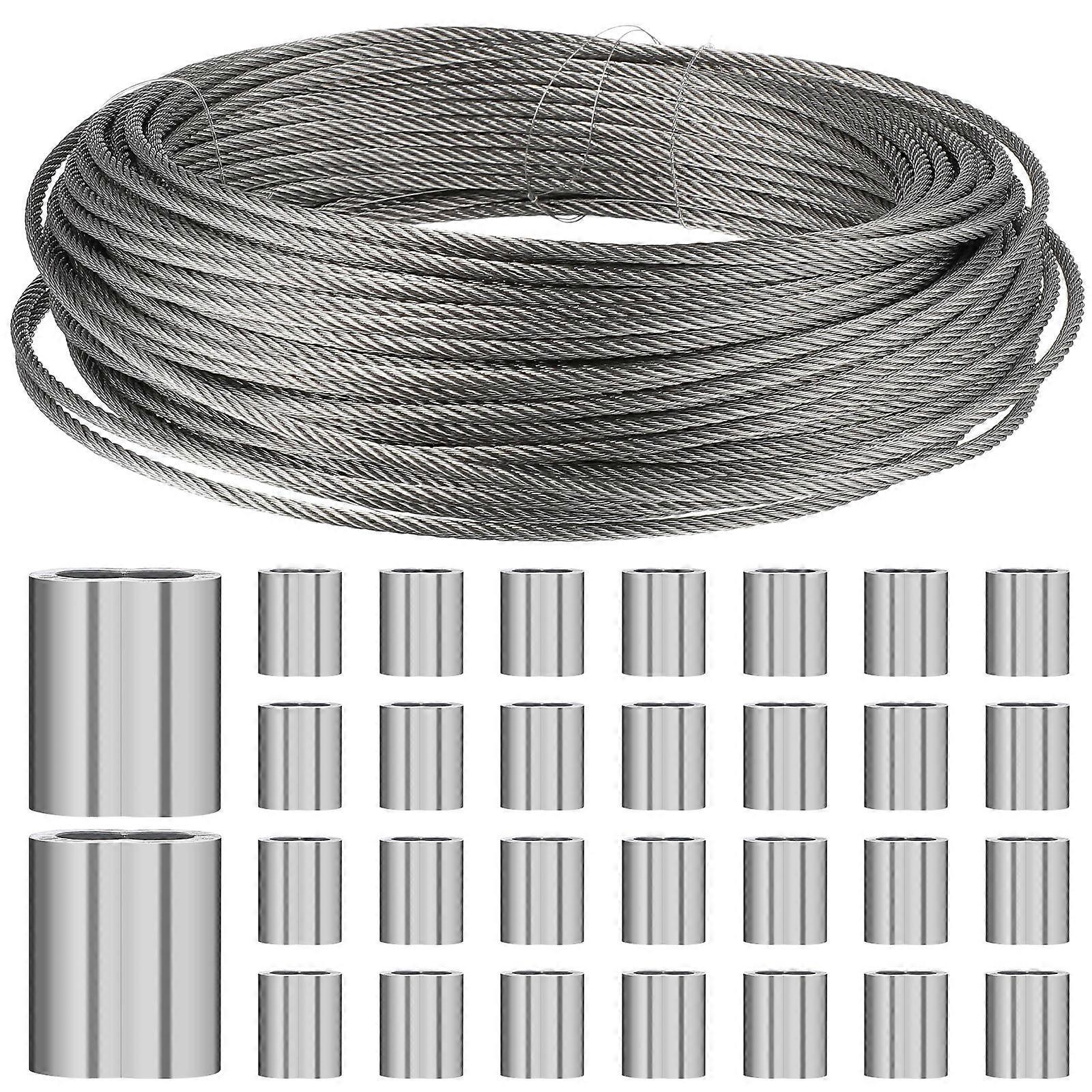 Stainless Steel Wire Rope with Aluminum Crimps – Corrosion Resistant Cable for Garden Fencing, Plant Hanging & Wire Crafting