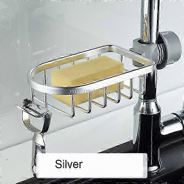 Aluminum Bathroom Faucet Shelf Sink Sponge Drain Rack Shower Storage Organizer Silver