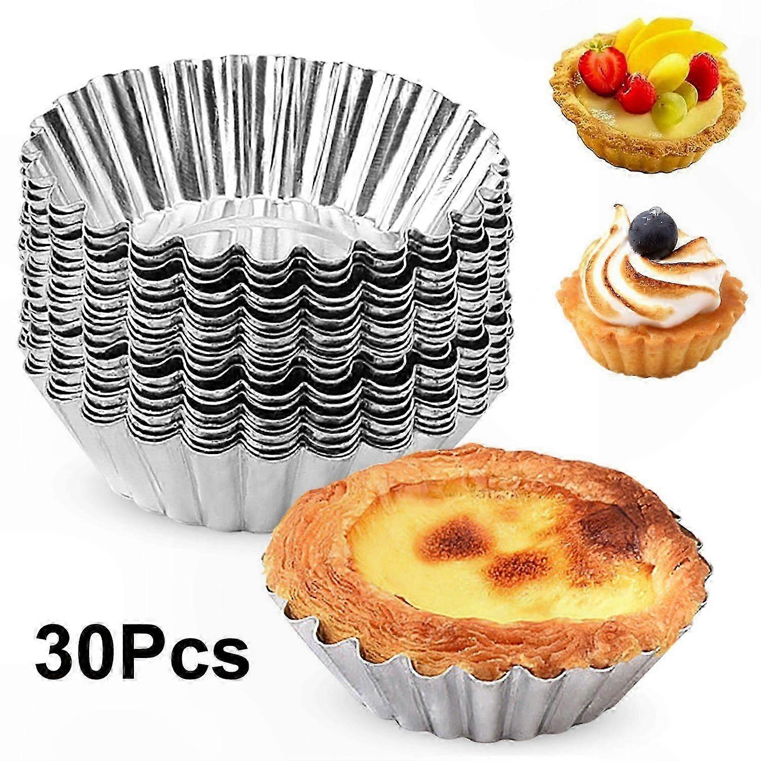 High-quality material The reusable egg cake mould is made of high-quality aluminium alloy, food-safe, corrosion-resistant, and highly heat-resistant. Fast heat conduction and even baking ensure your cakes are delicious and perfectly baked.Non-stick coating The seamless, one-piece design with non-stick properties ensures that baked goods are easy to remove without residue and can be reused. The polished surface allows for easy release of dough. The pudding, muffin, and egg cake mould gives your food an attractive shape.Easy to use The round aluminium muffin egg cake mould features a chrysanthemum pattern and a loose base that resists sticking, making it easy to remove and clean. Muffins can be taken out quickly and easily while maintaining their perfect shape until serving.Large quantity and size This set includes 30 mini cupcake moulds, allowing you to make multiple flavors of cupcakes at once. With a diameter of 7 cm and a height of 2 cm, they are ideal for making small cakes and snacks.Wide range of uses The muffin egg cake mould is an ideal baking tool for making a variety of homemade desserts, including pies, cakes, cupcakes, mini cakes, quiches, puddings, jellies, chocolates, and more. Perfect for family gatherings and celebrations.Creative gift These egg cake moulds are suitable for baby showers, birthday parties, weddings, anniversaries, family gatherings, and themed events. They make a thoughtful gift for friends and family.Product specifications Material: Aluminium alloy Color: Silver Quantity: 30 pcs/set Size: 7 x 2 cm Shape: Flower shape Usage: For making various homemade desserts such as pies, cakes, cupcakes, mini cakes, quiches, puddings, jellies, chocolates, and more.Features - Resistant to bottom burning - Resistant to rust - Easy release - High hardness and reusable High-quality material: Made from high-quality aluminium alloy, safe, corrosion-resistant, heat-resistant, with fast heat conduction and even baking performance. Non-stick design: Seamless one-piece construction with non-stick surface for easy release and a polished finish that allows dough to come out smoothly, ensuring well-shaped results. Practical to use: Chrysanthemum pattern with loose base and non-stick coating enables quick and easy cake removal while maintaining shape. Wide application: Ideal baking tool for making various desserts such as cakes, mini cakes, and puddings, suitable for home use and gatherings. Quantity and size: Set of 30 moulds, each 7 cm x 2 cm, ideal for making multiple snacks at once.