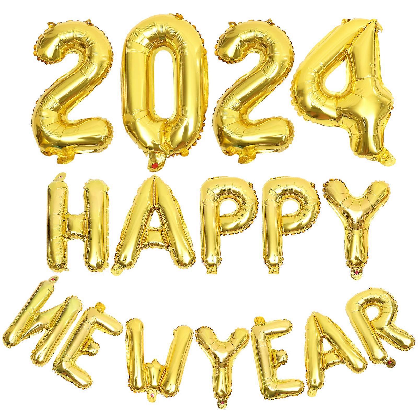 1 set of Aluminum Foil Balloons Happy New Year Balloons Party Decorative Balloons 2024 Foil Balloons