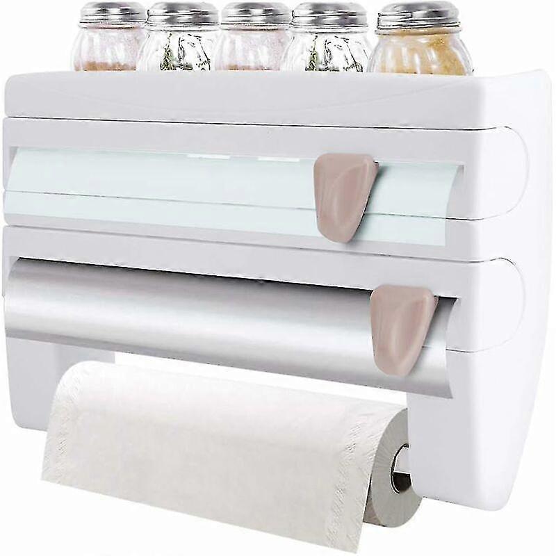 Aluminum Foil Plastic Wrap Dispenser, White, Paper Roll Holder, With Sharp Blades & Storage Shelves, For Kitchen Bathroom - Harry