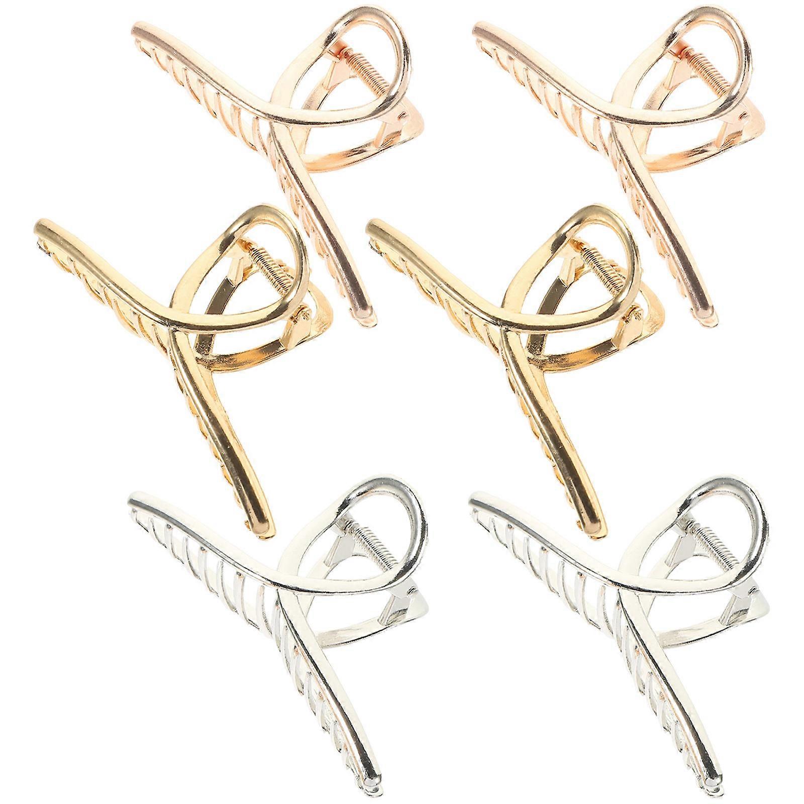 Aluminum Alloy Claw Clip Rose Gold Anti-Slip Teeth Design Daily Life 6Pcs