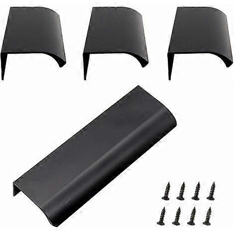 Aluminum Concealed Handle, 4 Pack Aluminum Alloy Invisible Furniture Handles for Kitchen Cabinets Living Room (120x40mm) (Black)