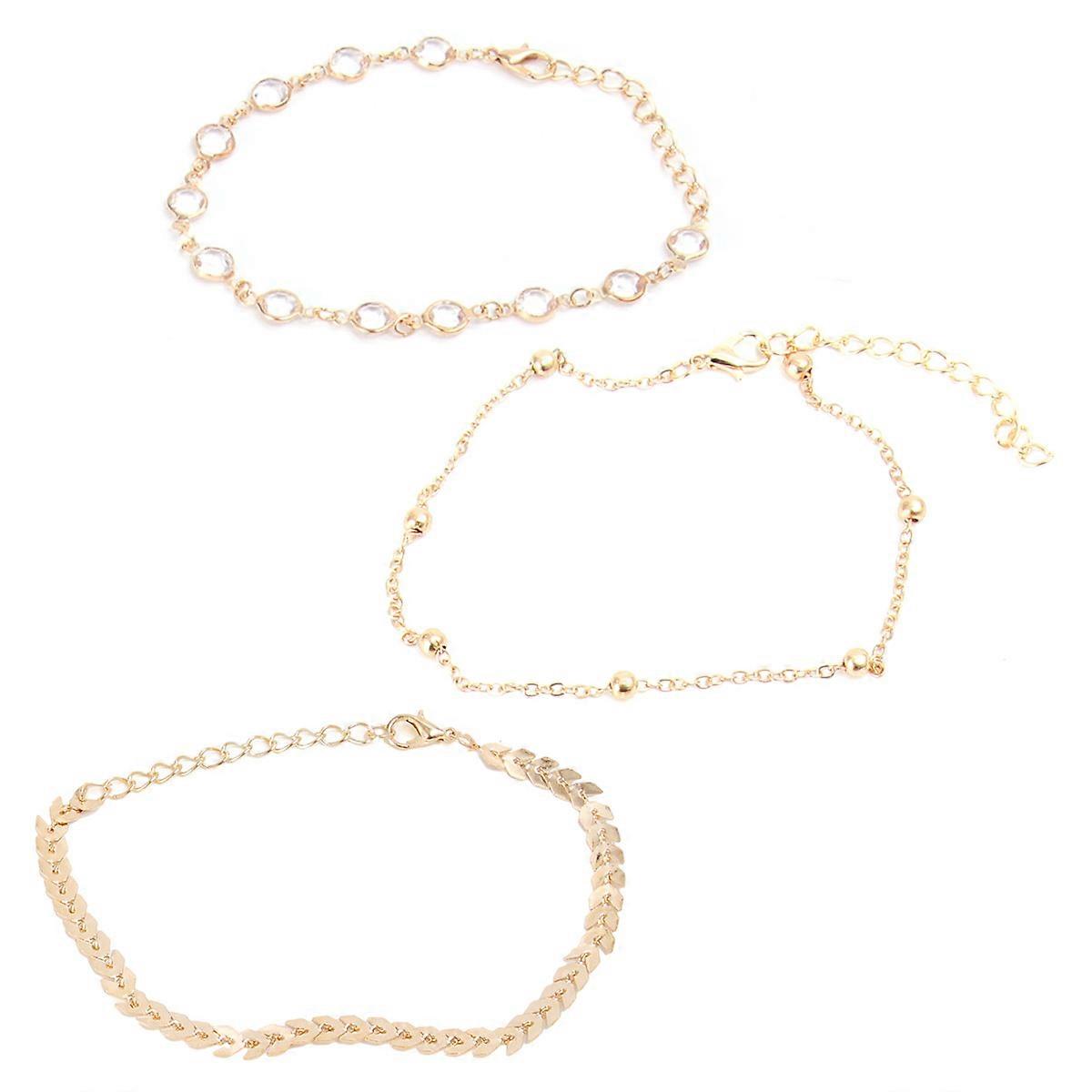 Anklet Fashion Anklets Chain All Accessory Rhinestone Foot Chain Golden 26x0.7cm 3Pcs