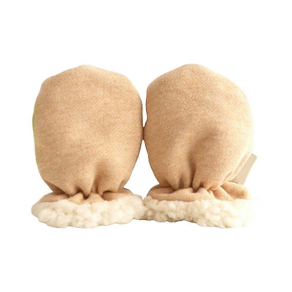Anti-scratch Infant Gloves Cotton Thickened Toddler Gloves Warm Baby Hand Cover for Autumn Winter (Light Brown)