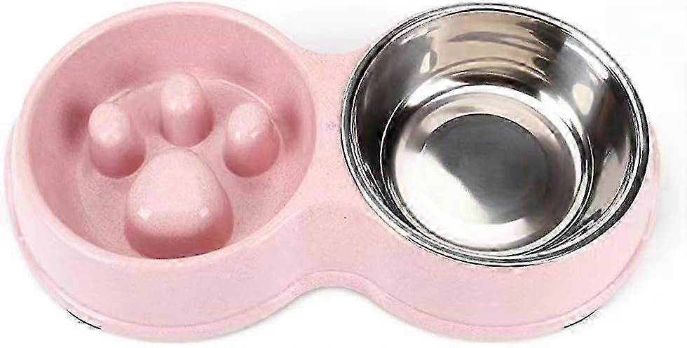 Anti-Choke Double Slow Feeder Dog Bowl with Detachable Stainless Steel Dish & Non-Slip Base - Pink