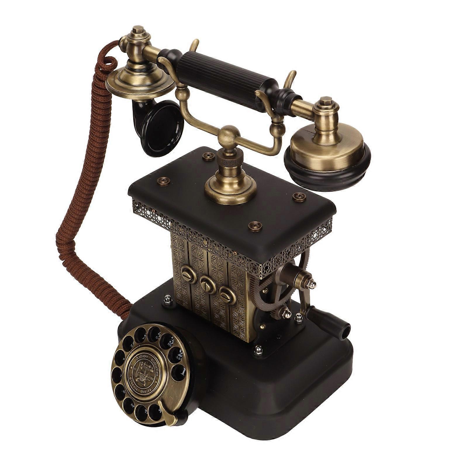 Antique Corded Telephone Rotating Dialing Decorative Vintage Phone Landline with Redialing Key for Living Room Bedroom